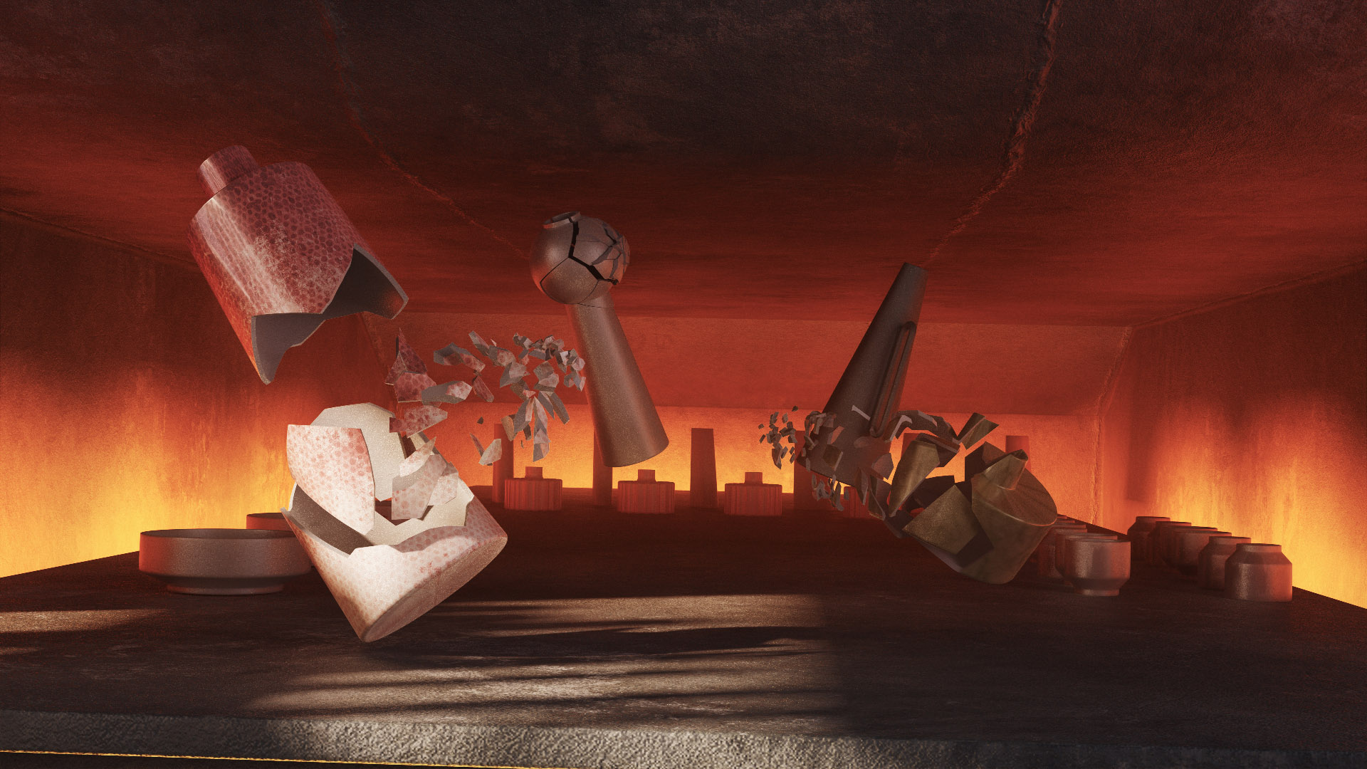Most of the video was built around this scene. Unlike most of my videos, I searched for the perfect song first. I needed something to inspire the animations and create emotion. I think it took 5 hours of intense searching but I finally found the perfect song. Nearly all of the animations came to my mind when I first heard it. Those specific notes were perfect for shattering the pottery in slow motion!